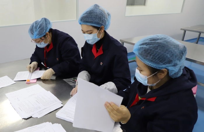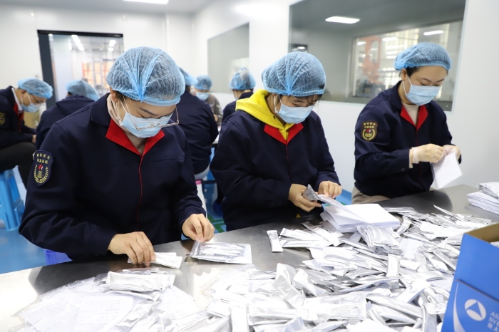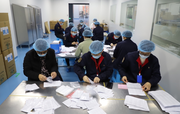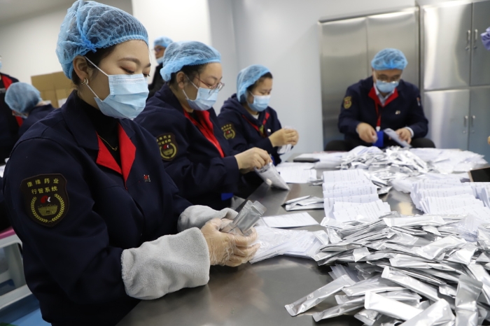 自3月7日晚任务下达以来,在康缘药业固体制剂工厂,各条流水线停下原定任务,全面调整生产设备和工艺流程,不计成本、不计代价,开足马力生产抗疫协定方。据悉,此次生产的抗疫协定方为三批共计36万袋,可供一万人五天使用。固体制剂工厂负责人介绍,按常规计划,原本这批协定方需要一个星期的生产周期,但疫情不等人、防控就是命令,港城人民的需要就是我们的职责,将保证连续奋战三天完成这批协定方。近30名行管、研发的同志也纷纷主动赶来支援,投入防疫物资包装任务。
