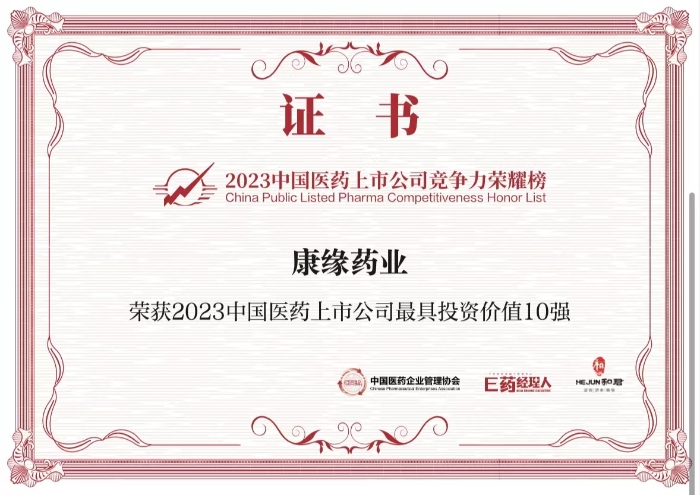 В ходе конференции были составлены список из серии «100 лучших китайских фармацевтических инновационных предприятий» 2023 года, выбранный Китайской ассоциацией управления фармацевтическими предприятиями и Организацией менеджеров электронных фармацевтических препаратов, а также «50 примеров передовой практики наследия и инноваций в традиционной китайской медицине в 2023 году». официально выпущен. Компания KANION PHARMACEUTICAL вошла в число «100 лучших китайских фармацевтических инновационных предприятий» и «10 лучших китайских фармацевтических компаний с наибольшей инвестиционной ценностью», а также была удостоена звания «Лучшая практика по наследию и инновациям традиционной китайской медицины».